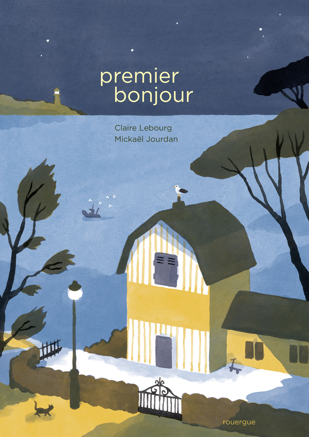 Cet album aux couleurs de l'aube raconte tout ce qui précède le moment du réveil: c'est le parcours du gardien du phare qui éteint la grande lanterne et enfourche son vélo.Il va croiser sur ce chemin la nature et tout un monde qui se réveille en cascade dans le détail et le très grand. Un petit crochet par la boulangerie et son odeur de croissant si matinale et un dernier coup de pédale jusqu'à la maison où un enfant attend ce veilleur les bras grands ouverts. Destiné aux tout petits, «Premier bonjour» raconte la bienveillance, rassurant sur la nuit, la promesse du lendemain et le réveil comme un rendez-vous chaleureux.